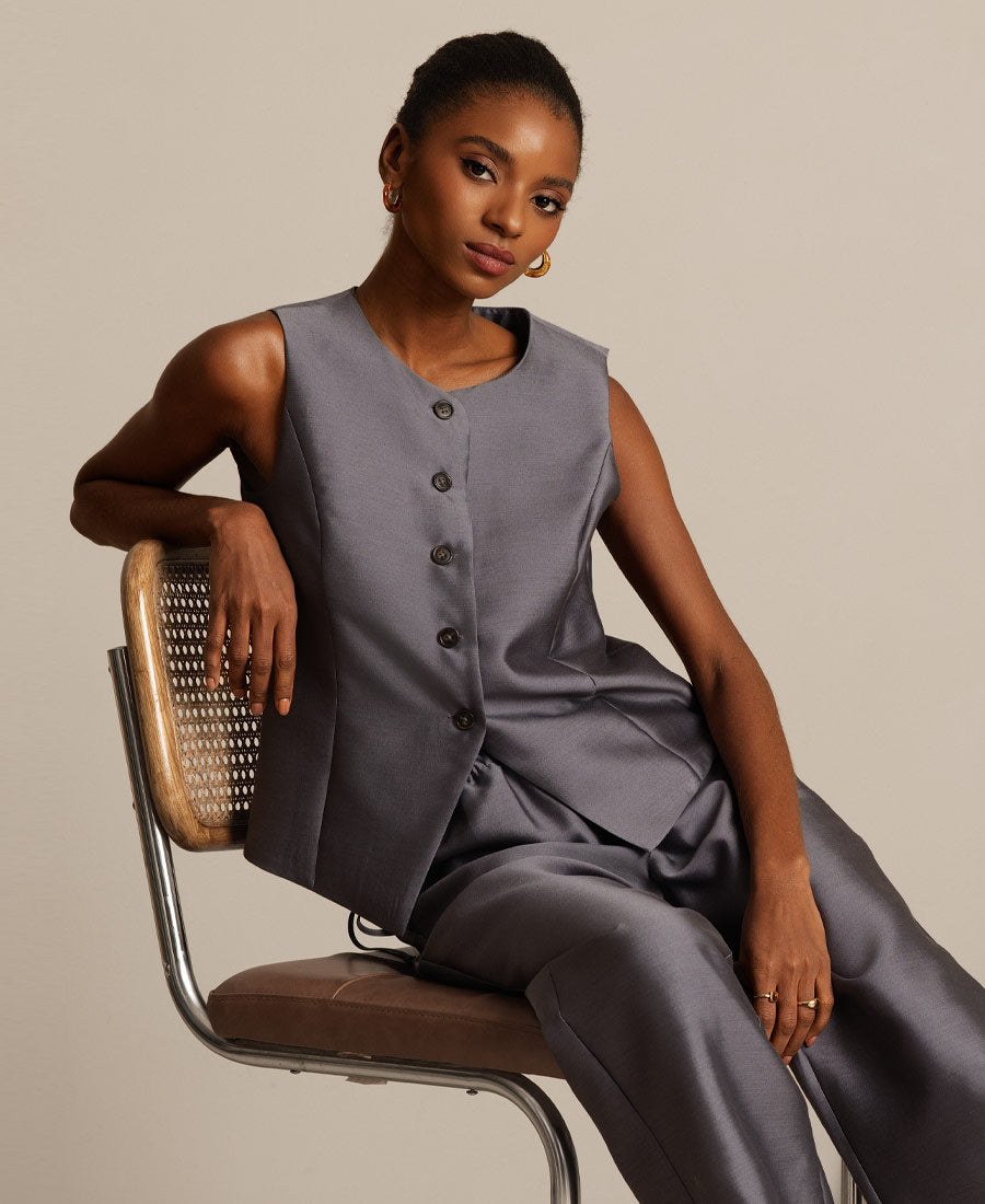 Gilet Donna in Mistura di Seta-Lana 32Momme con Design a Poche Bottonate