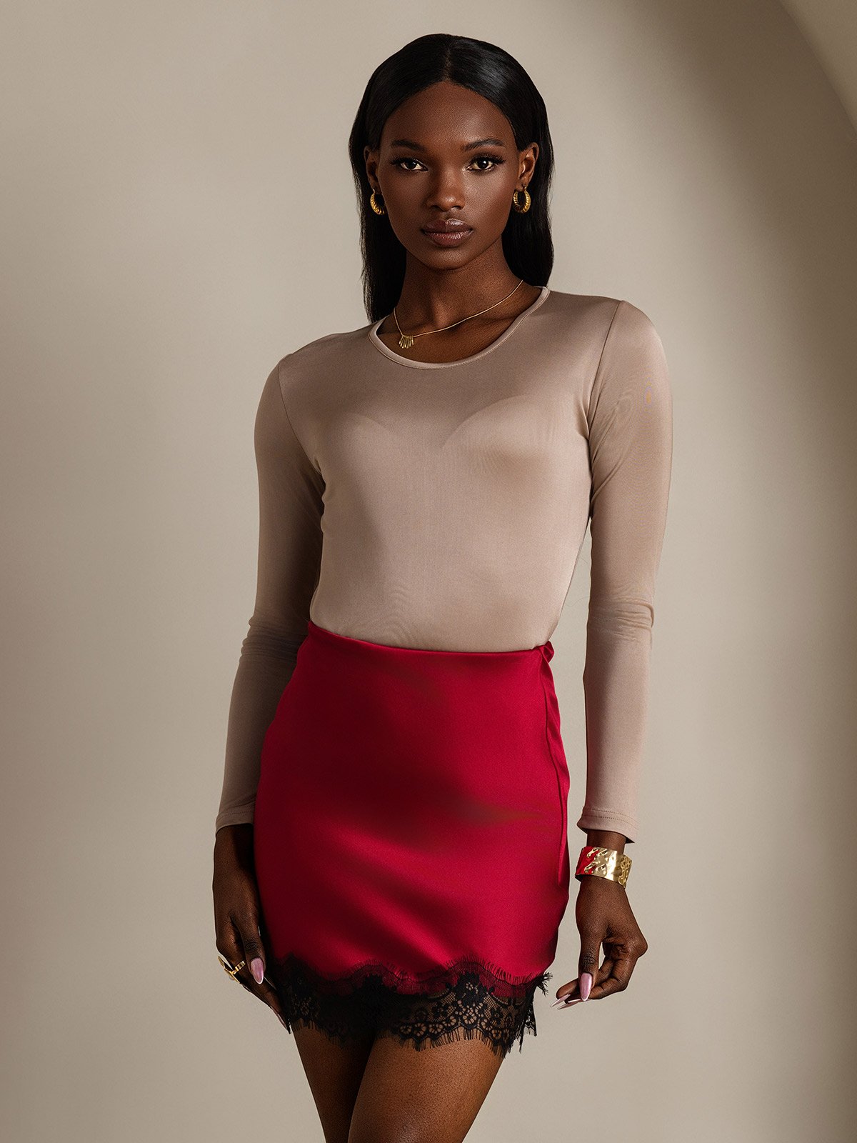 19Momme Seta Pizzo Rifinito Mini Gonna