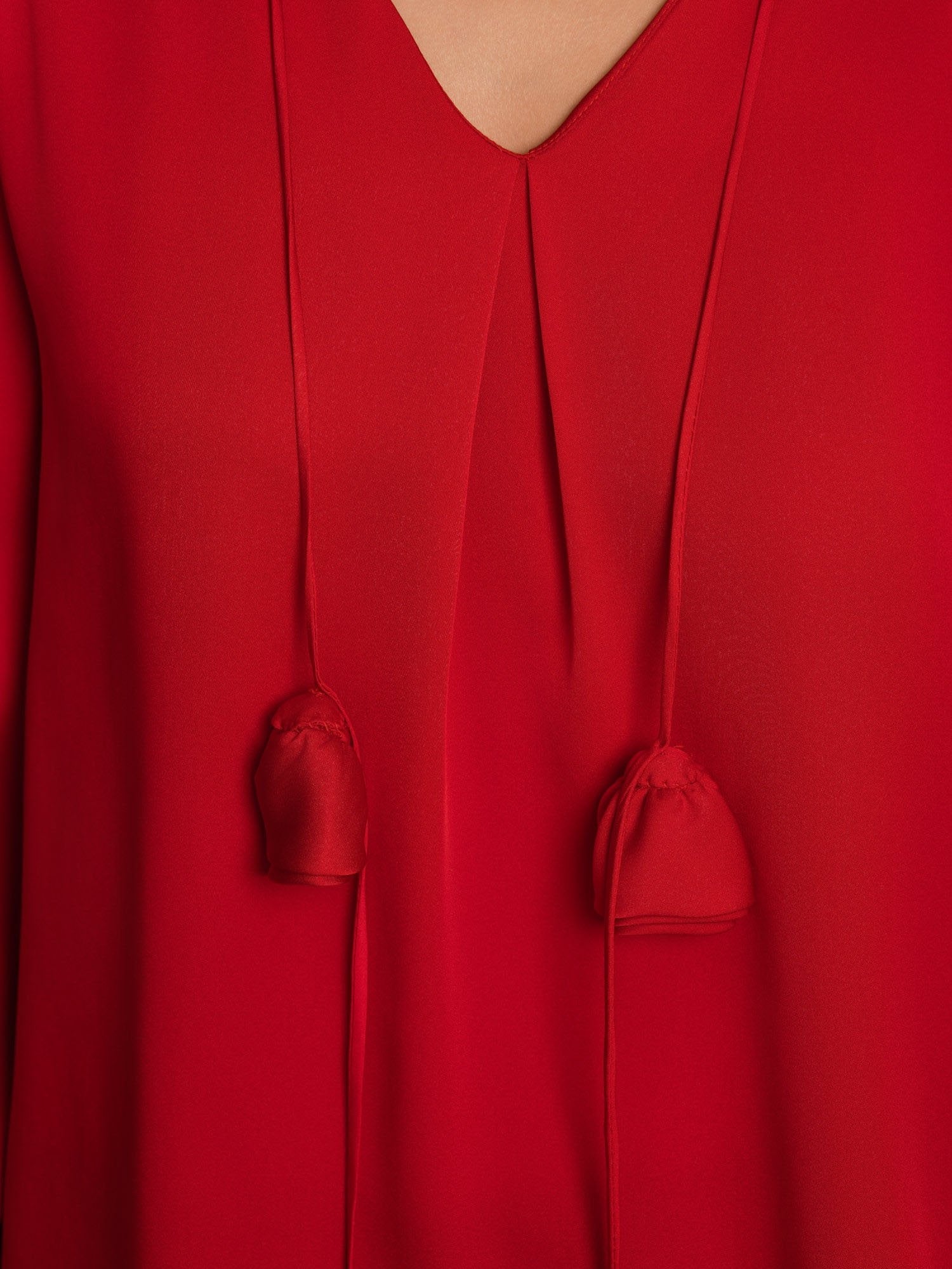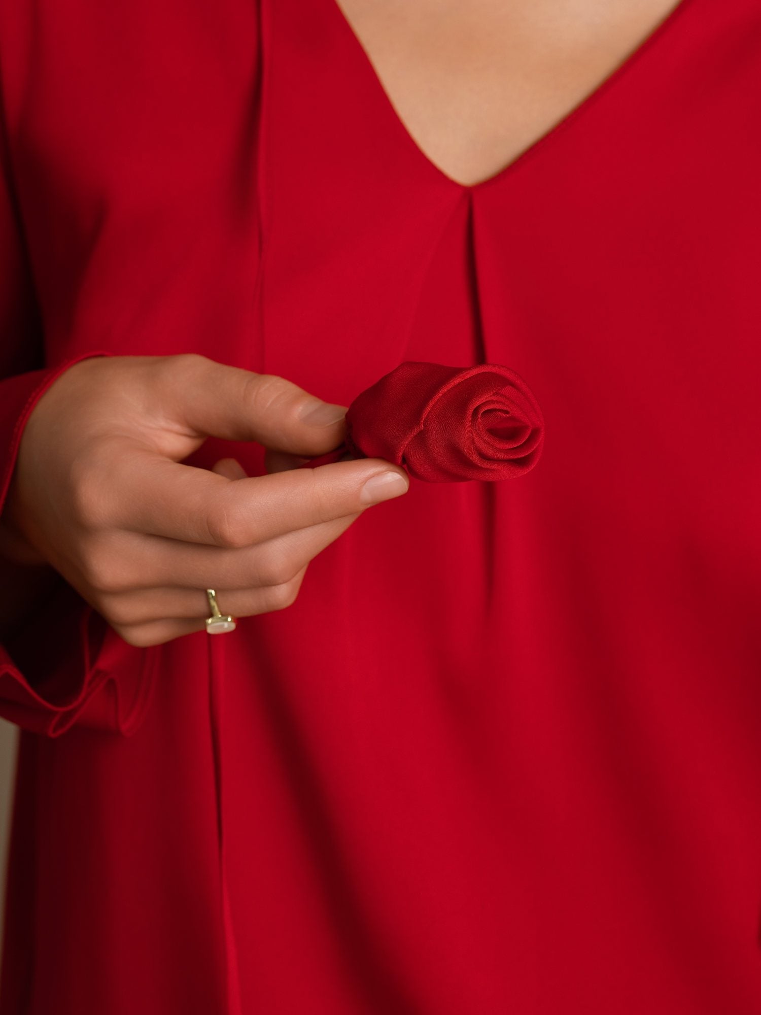 Realizzata In Lussuosa Seta Stretch Double Georgette 19Momme, Questa Blusa Offre Una Sensazione Liscia E Morbida Con Una Lucentezza Naturale. Lo Scollo A V E Le Maniche Lunghe Creano Una Silhouette Elegante E Senza Tempo, Mentre Il Design Plissettato Aggiunge Texture E Profondità Al Tessuto. Il Polsino Con Bottone Con Leggera Svasatura Aggiunge Un Tocco Di Raffinatezza, E La Decorazione Rosa 3D Esalta Il Suo Fascino Femminile. Abbinala A Pantaloni Sartoriali Per Un Look Curato Oppure A Una Gonna Per Uno Stile Chic E Raffinato.
