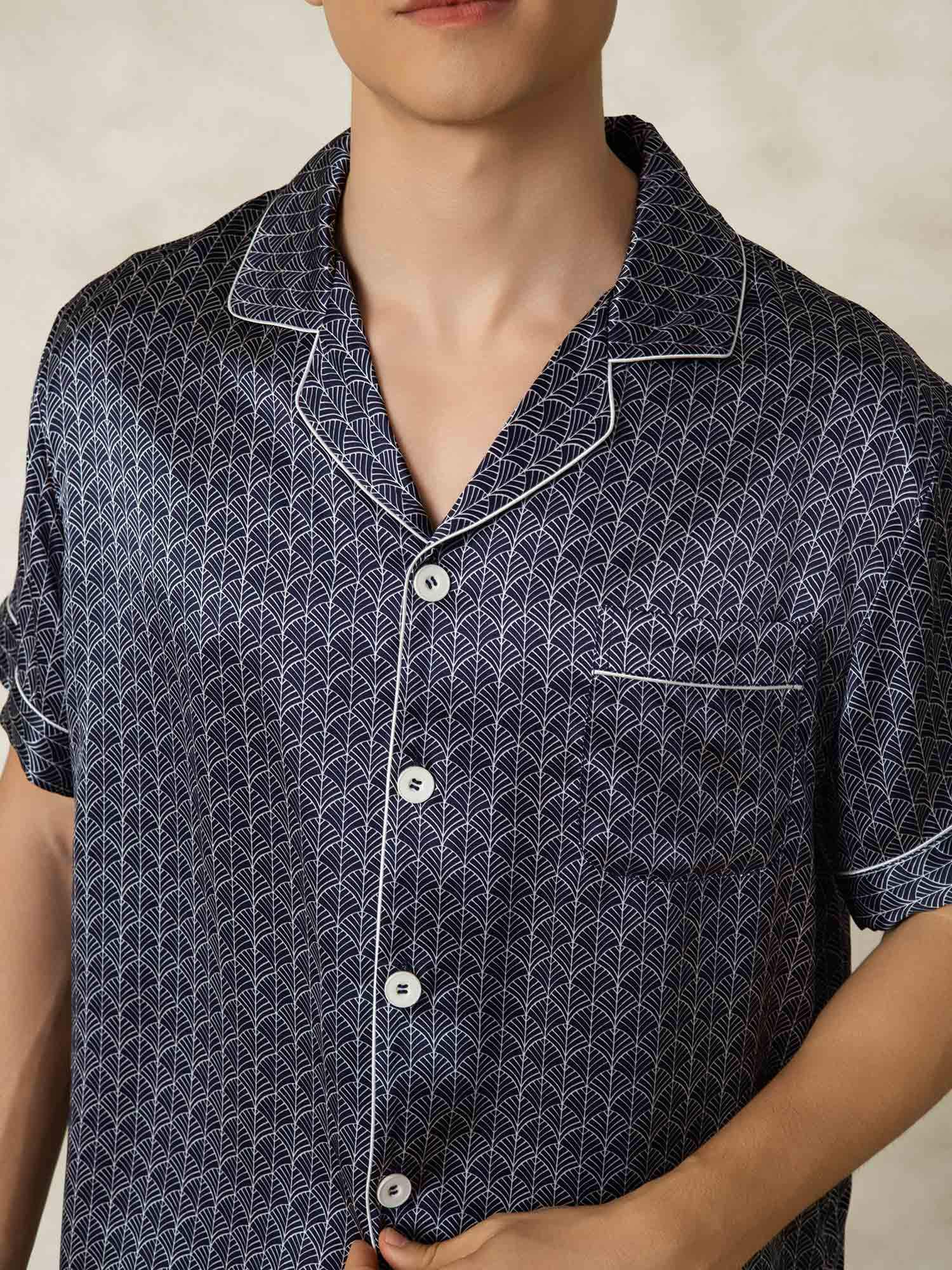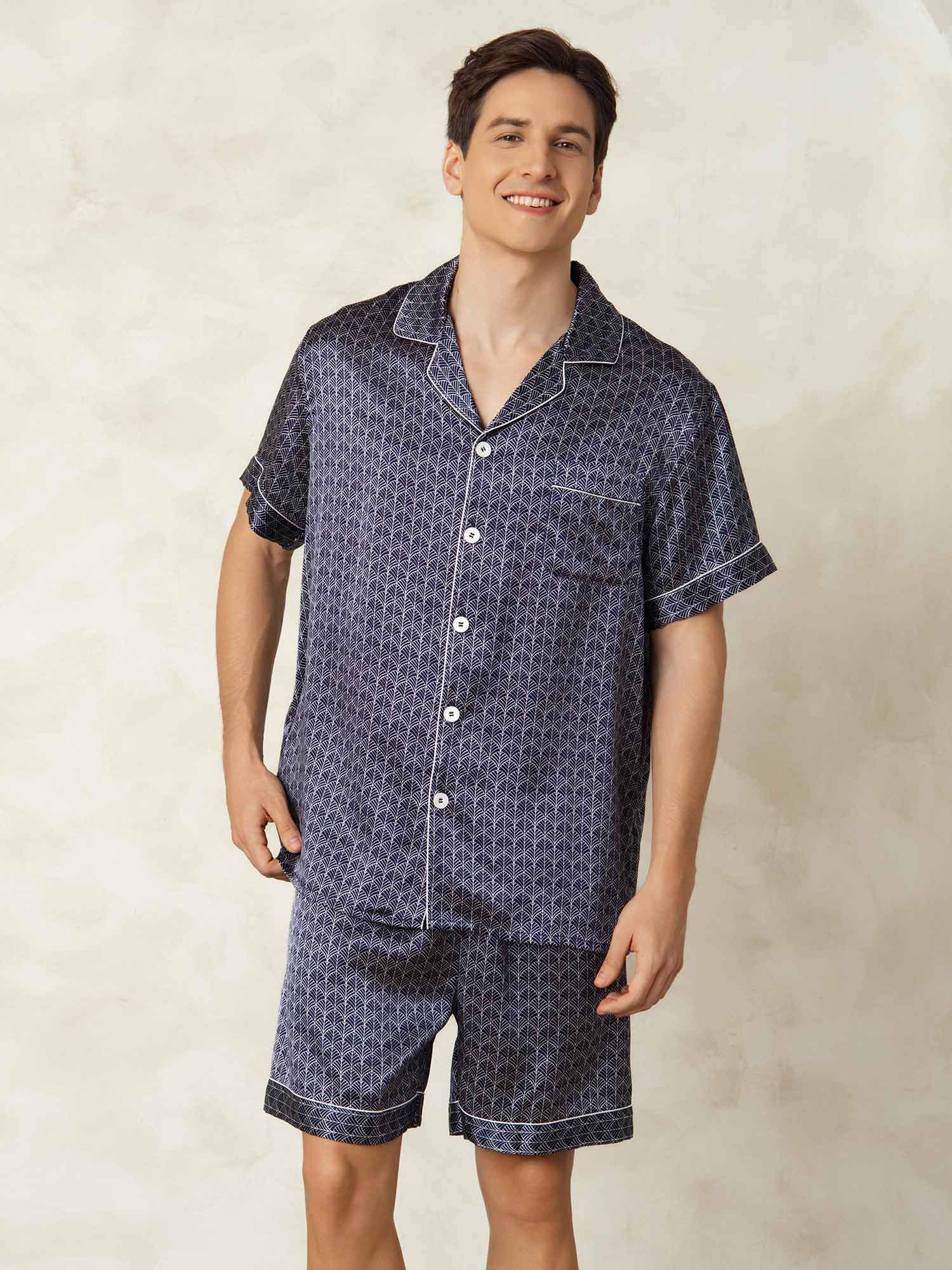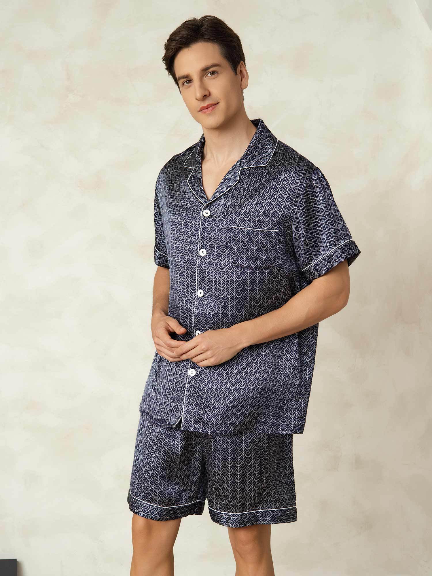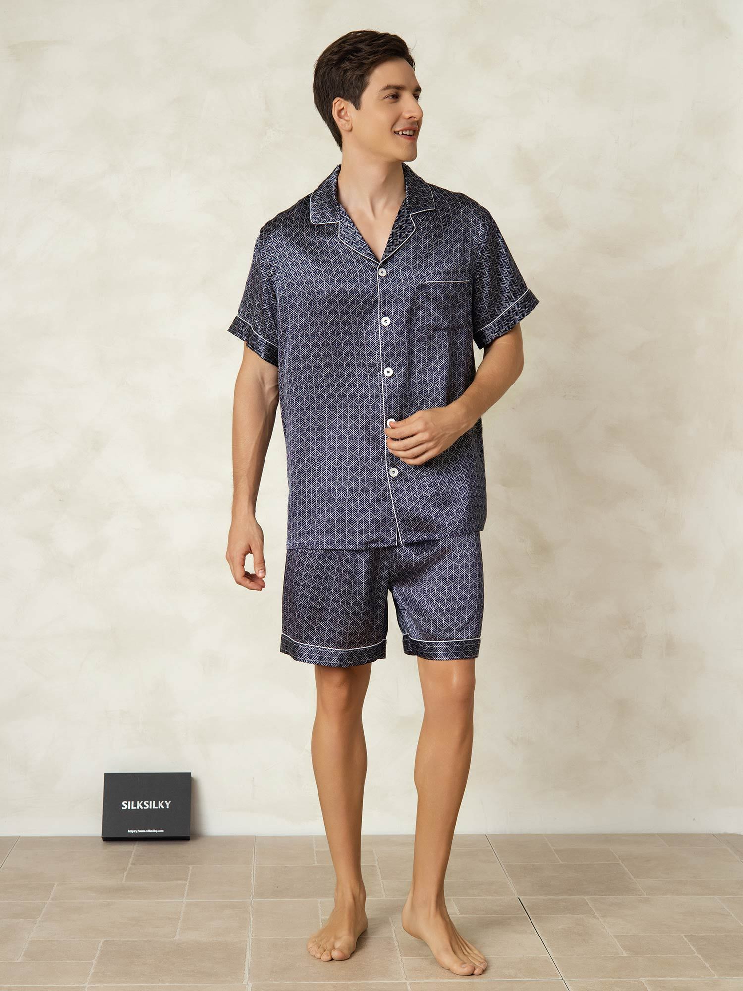 Seta Pura Geometrico Pigiami da Uomo Corti 2 Pezzi