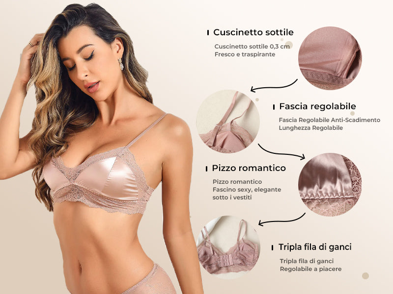 Il design senza ferretto a zero pressione di SilkSilky include spalline rimovibili per un comfort personalizzabile – scegli l'effetto invisibile o un sostegno delicato. Niente costrizioni, solo la libertà di scegliere.